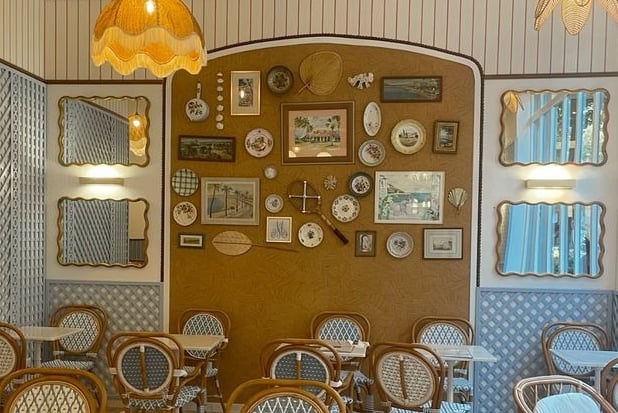 Edmond Café's signature soft blue walls and accents set the tone for its serene atmosphere. Incorporate soft blue elements into your decor to evoke a sense of calm and French elegance.